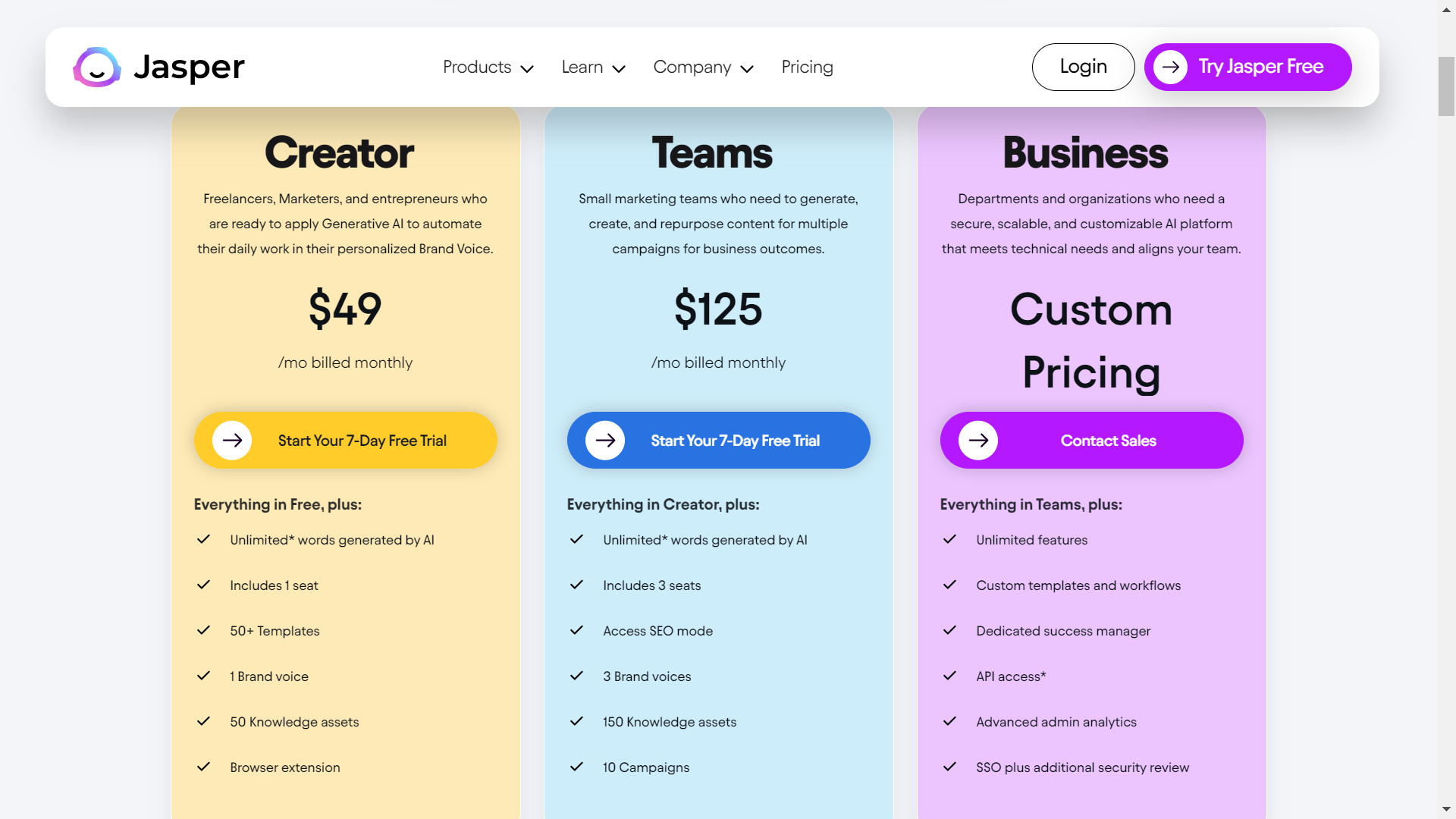 I appreciate that JasperAI offers a free trial for users to test the platform before committing to a subscription plan. It’s always reassuring to try before you buy.